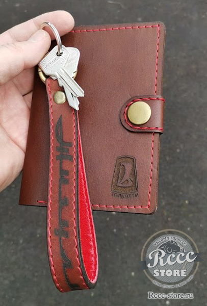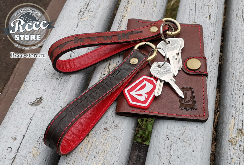 Брелок Luxe в виде кожаного ремешка с гравировкой Жигули