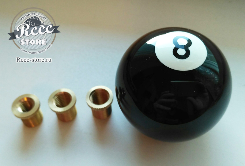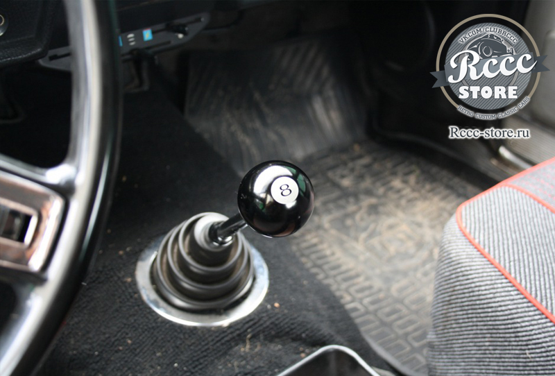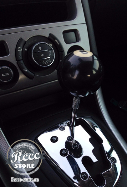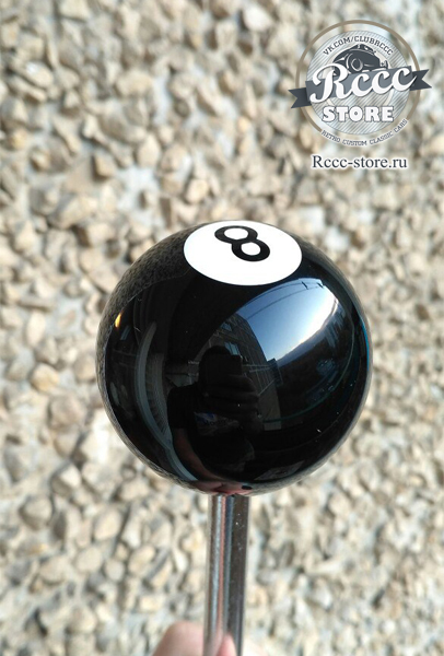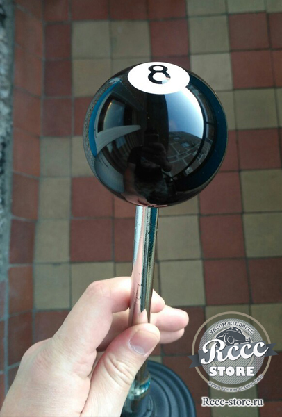 Ручка на коробку передач в виде бильярдного шара с цифрой 8.